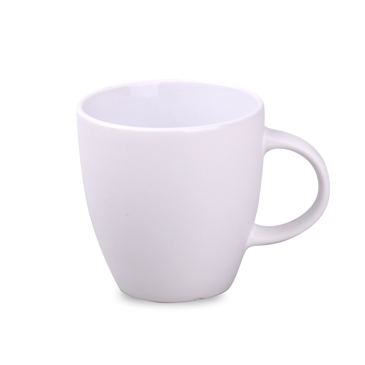Matowy kubek w modnej kolorystyce. Wcięcia w podstawie kubka służą odprowadzaniu ciepła, dzięki temu nie pozostawia on nieestetycznych śladów na meblach.